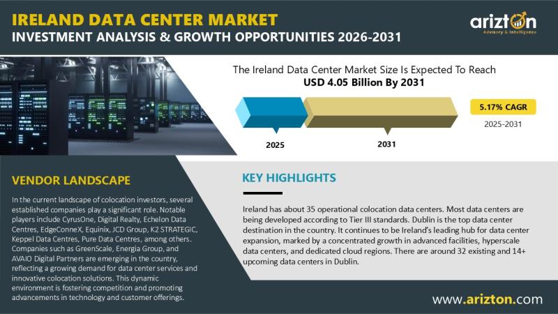 According to Arizton, the Ireland data center market is expected to reach USD 4.05 billion by 2031, growing at a CAGR of 5.17% during the forecast period. The market is evolving into a key hyperscale and cloud infrastructure hub in Europe, supported by strong investments from global technology companies, increasing AI-driven computing demand, and continued enterprise migration toward cloud environments. Dublin remains the center of development activity, while Ireland's strategic…