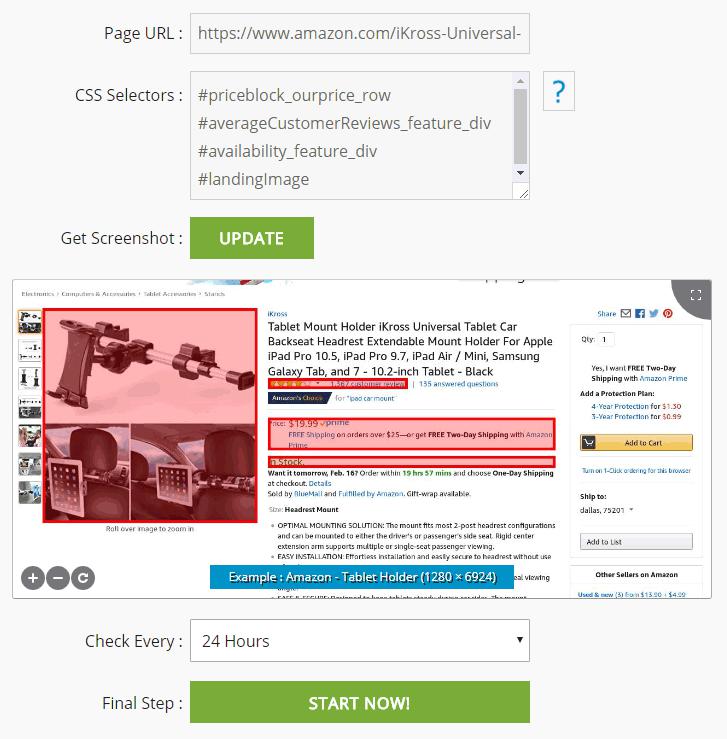 Change detection isn't visual-image based since that method would be too imprecise. Instead, MonitorWiz uses contextual comparison with HTML elements called CSS Selectors.
