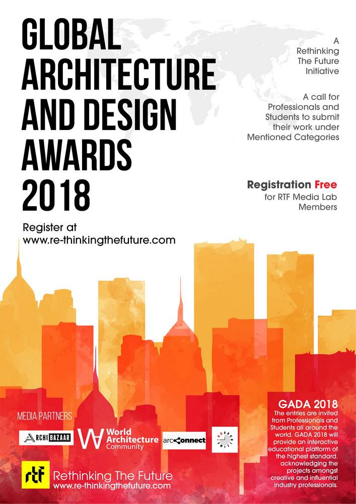 Global Architecture & Design Awards 2018 (GADA 2018)After successfully completing the RTF Awards for consecutive five years, Rethinking The Future has launched the Global Architecture and Design Awards 2018 with even more project categories this year.