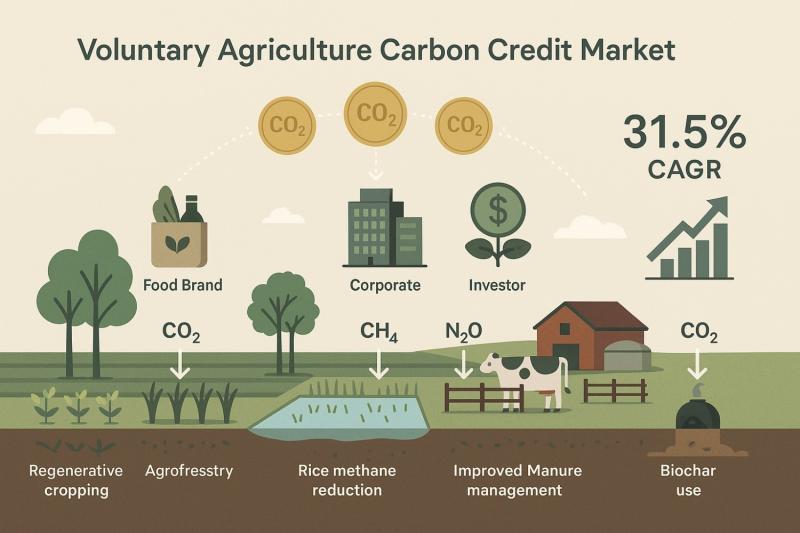 [New York], [USA] - December 9, 2025 - The voluntary agriculture carbon credit market is set for strong expansion, growing at a 31.5% compound annual growth rate (CAGR) as food companies, corporates and investors turn to climate-smart farming as a practical source of verified carbon reductions and removals. Farms are emerging as key climate assets, with new projects turning improved practices into tradable carbon credits.